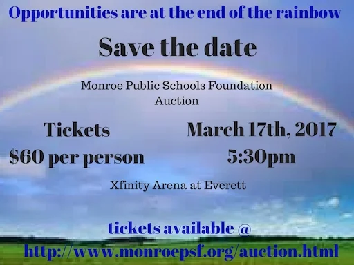 Generous donors and attendees came together to make our 2017 annual action an amazing night for the kids in our district, bringing in over $100K! On Friday March 23rd, 2017, the Monroe Public Schools Foundation will host our annual auction once again at the Edward D. Hansen Center at Xfinity Arena in Everett, WA. This auction is a much anticipated event each year and we hope to see you there! As we get closer to the event, we will provide additional details on purchasing tickets as well as sponsorship opportunities.